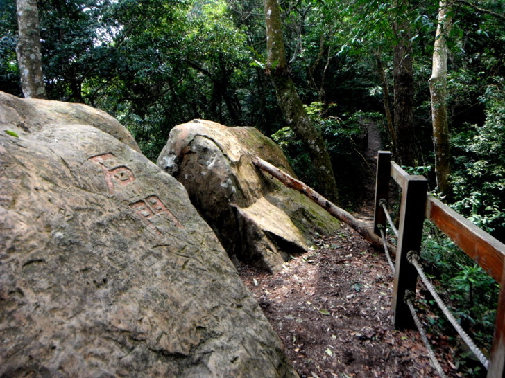 0923過大石璧後,開始取階陡上。久沒造訪山林的路ㄟ不敢造次快行,循階緩上,樹稍偶透的微風,有著一陣舒爽的感覺。