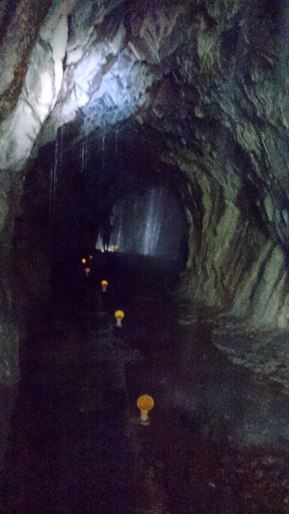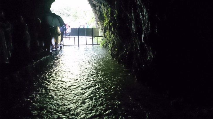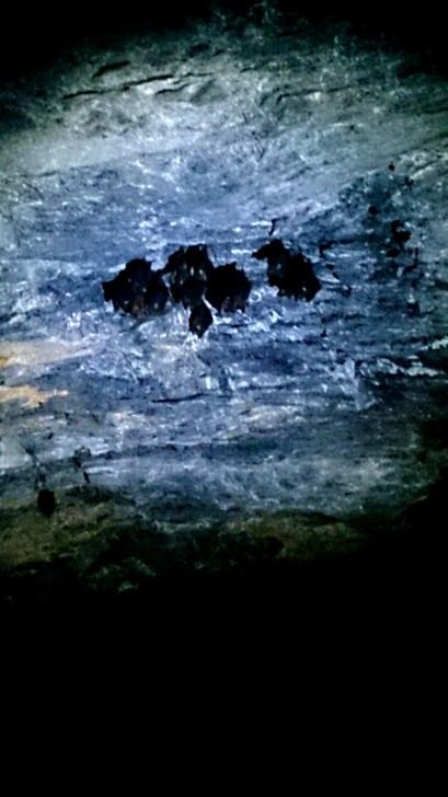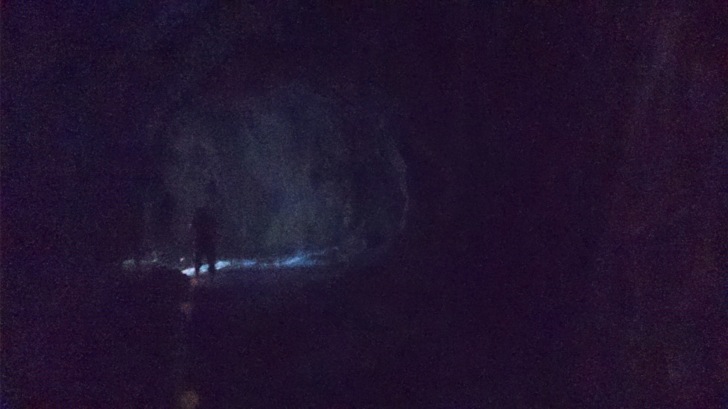 取原路回,才注意到,幽暗的山洞隧道上方住著一群蝙蝠,頭燈的亮度似乎干擾到牠們的睡眠,路ㄟ將頭燈向下,快步續行。