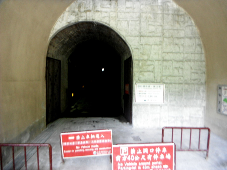 明隧道內的隧道就是白揚入口。開頭燈穿越幽暗隧道。