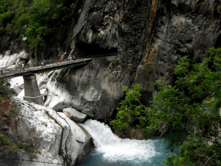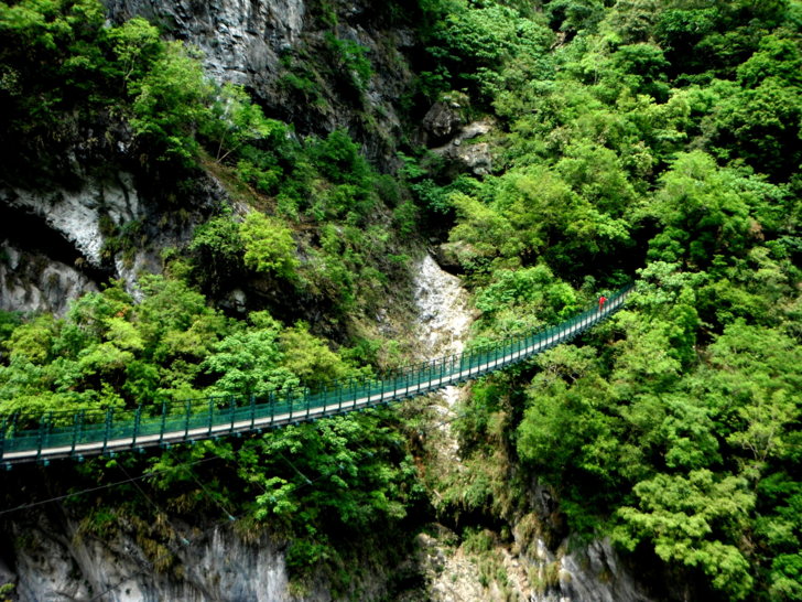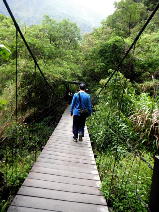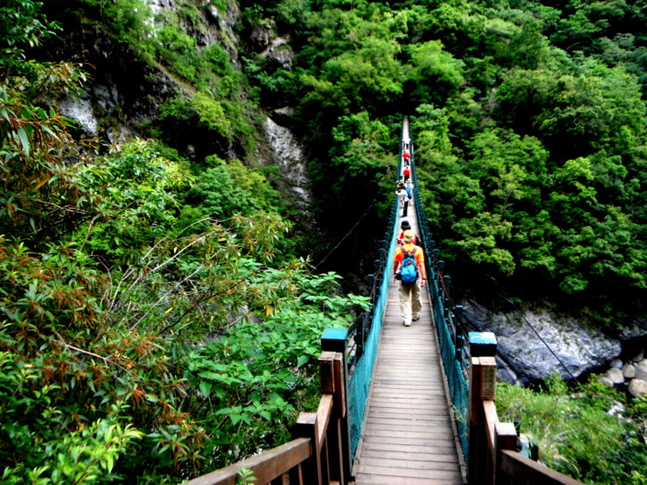 過錐麓吊橋,大隊人員此起彼落的驚呼,是燕子口峽谷風光的驚豔,瞬間秒殺不少相機記憶。