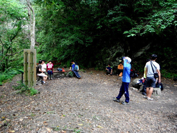 3.1K斷崖駐在所。早到的隊友已等候許久。裝備都在路ㄟ身上,慢行押後,對早到的朋友有些抱歉。迅速取水泡咖啡慰勞隊友們,也煮食午餐。一群人閒聊、休憩。