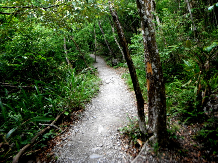 往綠水方向前行30M,取右進入步道,寬大的緩上坡,經過錐麓洗禮後,這條步道只算是"散步"吧!