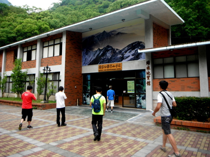 回抵綠水地質館。館內展示太魯閣峽谷地值的形成,頗有看頭,路ㄟ在外小休摸魚,鼓勵隊友們進去參觀。