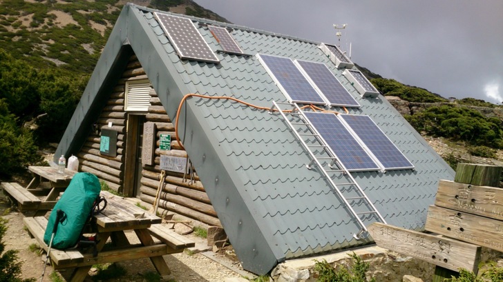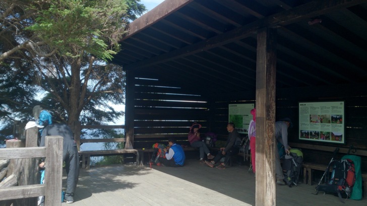 1414抵圓峰山屋(H3630M,記:3640M)。牆上的溫度計是舒適的15度。下揹包,進山屋。七人山隊的裝備在床上,公務床位上有一位山友在睡覺,路ㄟ當場傻眼,不是說只有一隊山隊嗎?怎會多了一個人?好在今晚路ㄟ有床位,不然還真的不知道要如何是好?
