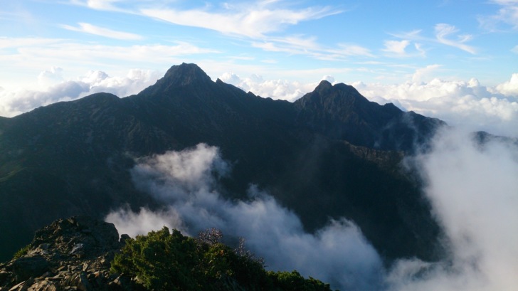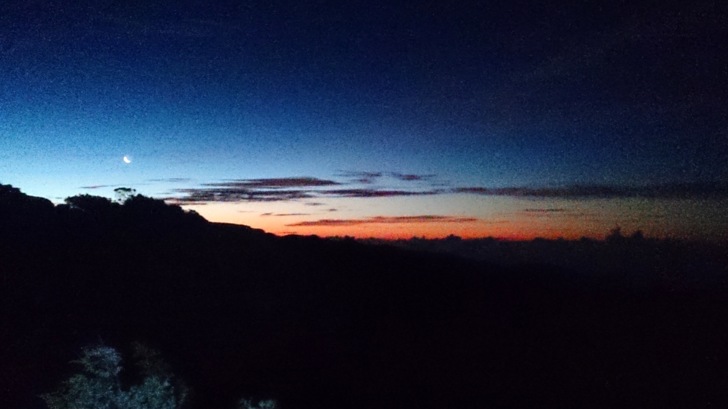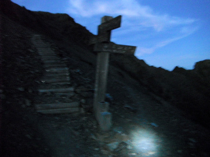 0430開頭燈,啟程出發。取山屋前圓柏瘦稜前進,三叉峰下明亮閃爍的頭燈是先前出發的三位外國朋友與台南帥哥,感覺並沒有差很遠,實際已有一段距離。