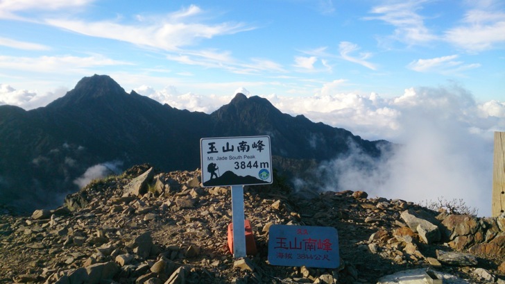 玉山南峰--標高3844m,百岳排名第五(一說第四),十峻第二。位於嘉義、高雄交界,隸屬高雄桃源區。日領時期稱"新高南山",又名閉鎖曲線峰。由主峰望之,連稜起伏,狀似游龍(由鹿山途中回望似龍頭),邢天正先生稱其為"天龍峰"。為玉群後四峰,最高且最近圓峰山屋的高山,雄偉的山勢,極佳的展望,為後四峰必登山岳之一,岳界多採與東小南、鹿山聯登方式造訪。
