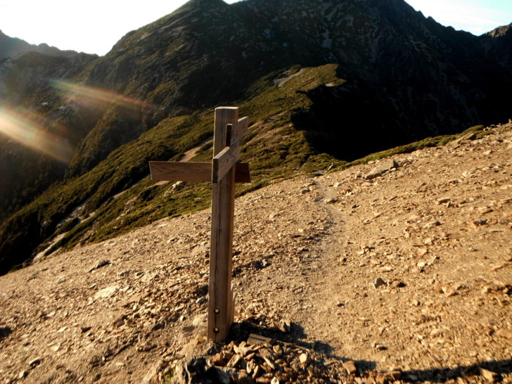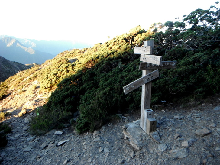 1747回四叉路口。取右回圓峰山屋。夕陽的光芒已逐漸出現,溫度也變得舒適許多。