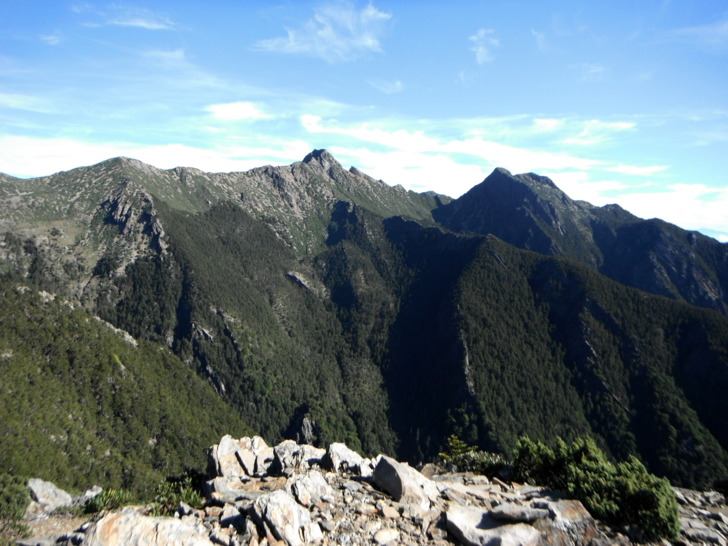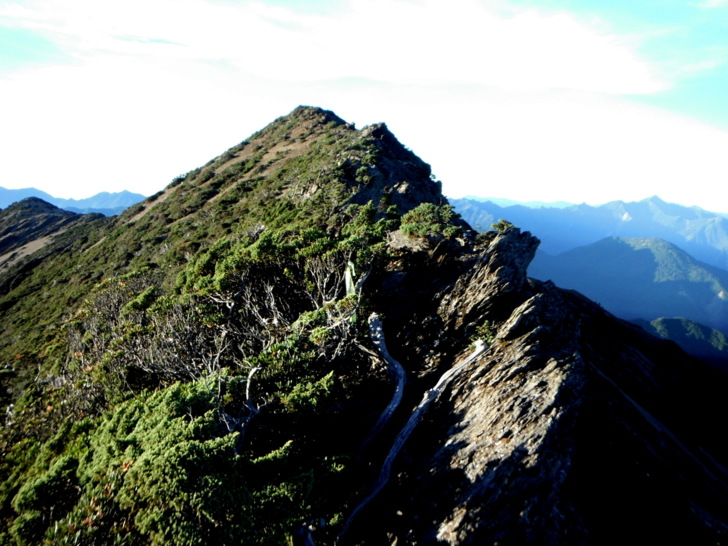 0735翻越第一座小山頭(H3635M),裸露岩徑不太好走,四周風光頗優,南二連稜一路相隨。