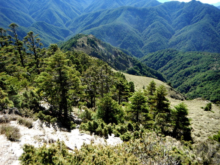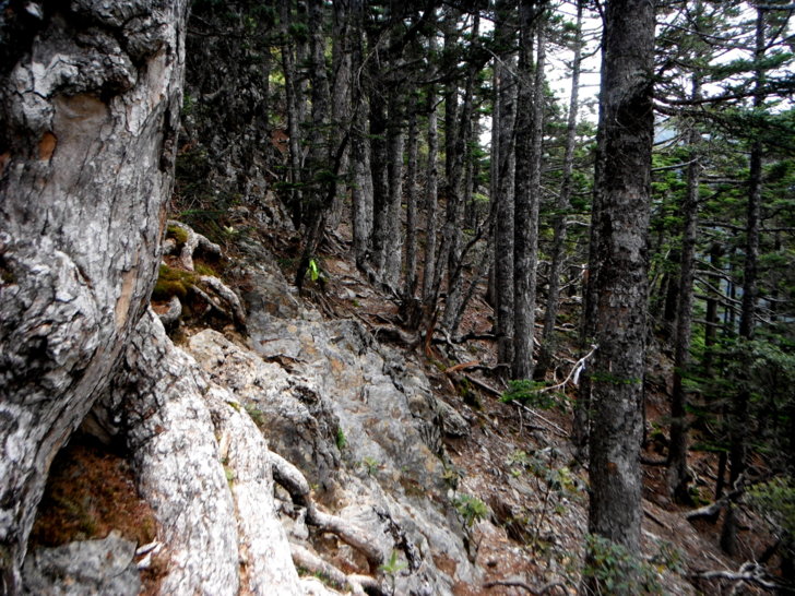 1530回抵南峰叉路(H3620M),取往東小南方向行,進入鐵杉林。