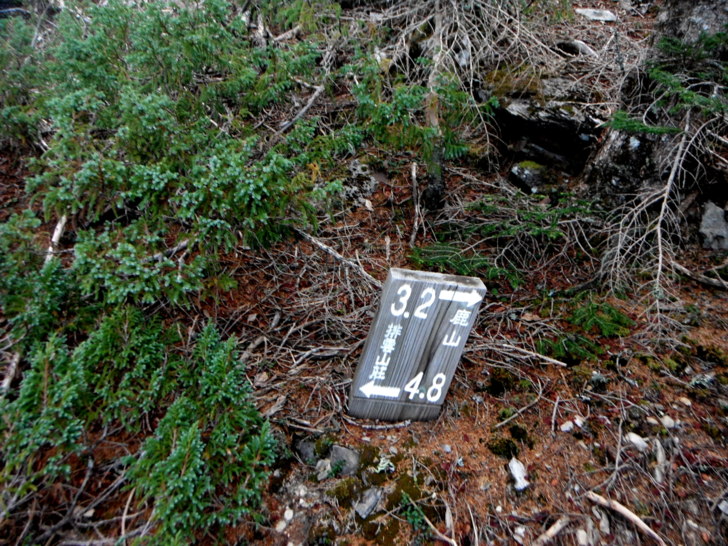 0620基點讓給帥哥,路ㄟ和友人先行,取原路回到鹿山叉路指標,取右碎石陡坡下行一小段路後,發現路徑與路ㄟ上次造訪時不太一樣,感覺非常陌生,雖有足跡,卻沒有疊石與路條。趕緊回撤,在叉路指標下約5公尺左側矮圓柏上,看到路條,穿過圓柏,才有明顯路跡,算是取東小南稜下腰繞。