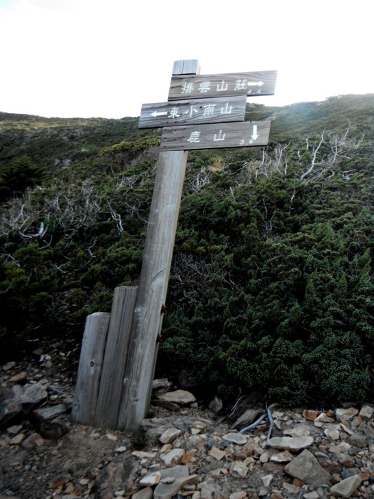0527南峰四叉路口(H3725M),左上南峰,右往東小南,下往鹿山,回往圓峰。除了南峰,這裡是今天的最高點,也是從鹿山回來最大的挑戰,取右往東小南前進。循稜起伏,路徑並不難走,去年來時,滿是濃霧,今天晴空萬里,風光美不勝收。