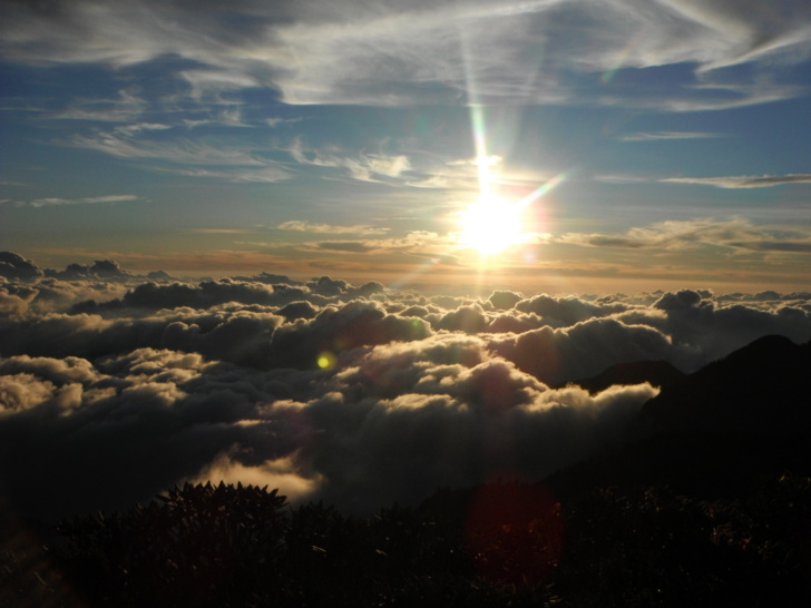 美麗的夕陽與雲彩,在時序的軌跡中翻騰變幻,這等美景,真的必須要用體力去換才看的到,一天來的疲累,在這美景中,已療癒大半。就在這裡等到星空高掛,才帶的滿足的心,漫步回到山屋。
