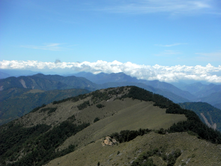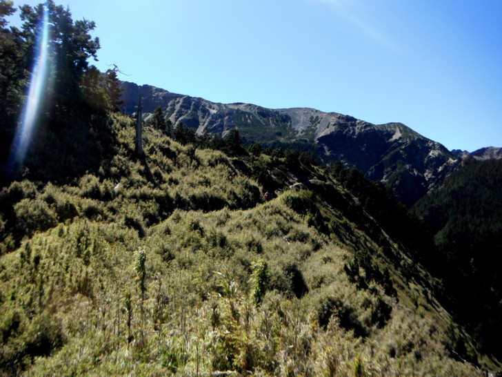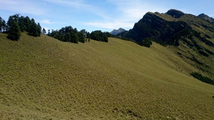 穿越第一片森林後,圓柏身影一一現出美麗的姿態,瞬間又秒殺不少記憶空間。去年走到這裡已開始起霧,這趟在藍天的映襯下,整個秀麗的風光呈現眼前。
