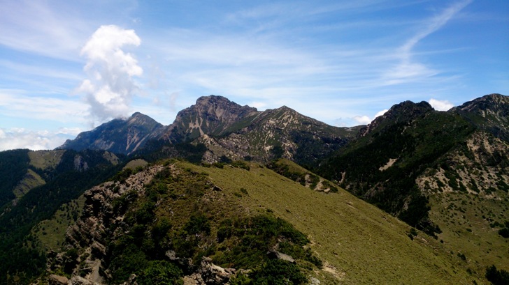 "美景要用體力換",這是路ㄟ一直掛在口中的名言,過了1.7K的困難地型,美景開始現身,從這個角度望主峰與圓峰上看的有完全不同的風情,西峰圓潤的翠綠山頭也清楚可見,放慢步履,賞景拍照。