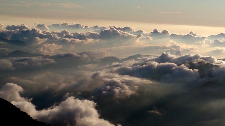 時近黃昏,遠處已見登鹿山回來的山友身影,這時間回來,速度算很快,果然是健腳級的山友。帥哥相約到通訊點稜線看夕陽。抵達通訊點,先打電話報平安,轉眼間,夢幻般的夕陽雲彩在眼前展現。如棉柔軟,如浪奔騰,交互堆疊中,覆蓋著一層輕盈薄紗,在夕陽柔和的光影下,譜出如詩如畫的動感樂章。路行者上山多年,這種夕陽美景真的少見,看的路ㄟ如癡如醉,有景如此,兩天來的疲憊也都值得了!