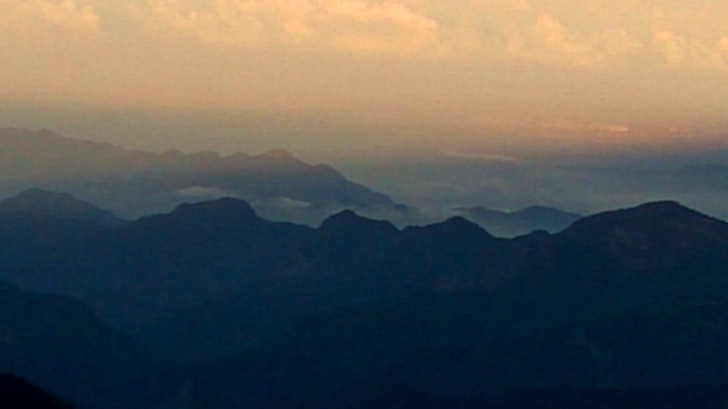 0527南稜線登山口(H3775M)。今天的最高點。有不錯的展望,晨嵐堆疊的山峰,又是一幅美麗的圖畫,拍照賞景片刻後,續行。