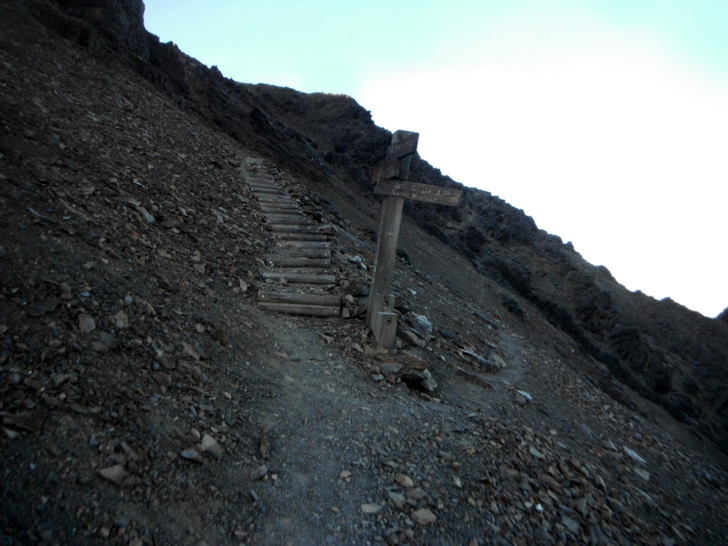 0600回抵主、南叉路口(H3595M)。取左下行。途中有山友準備上玉山主峰,這時間上山雖然看不到美麗的主峰日出,卻也能避開滿是人群的喧擾,獨享主峰頂的優美山色,各有利弊,端看個人喜好而定,續行。