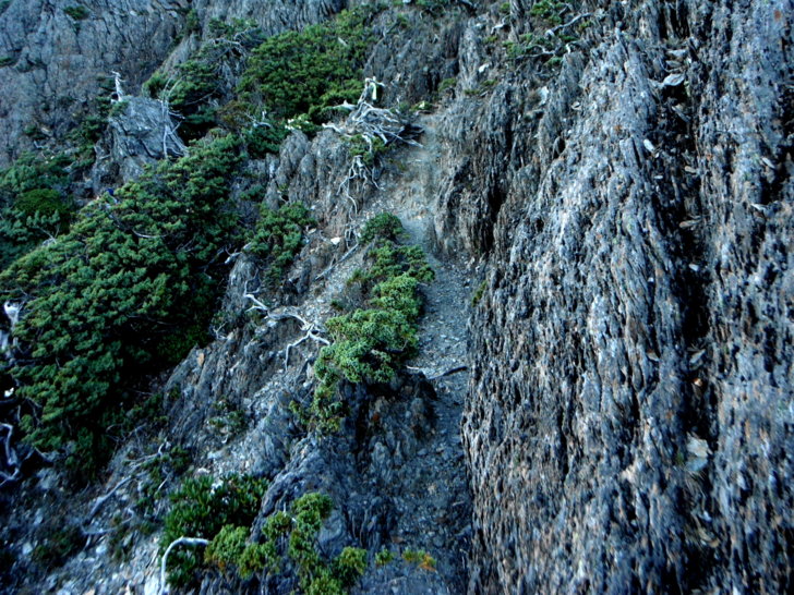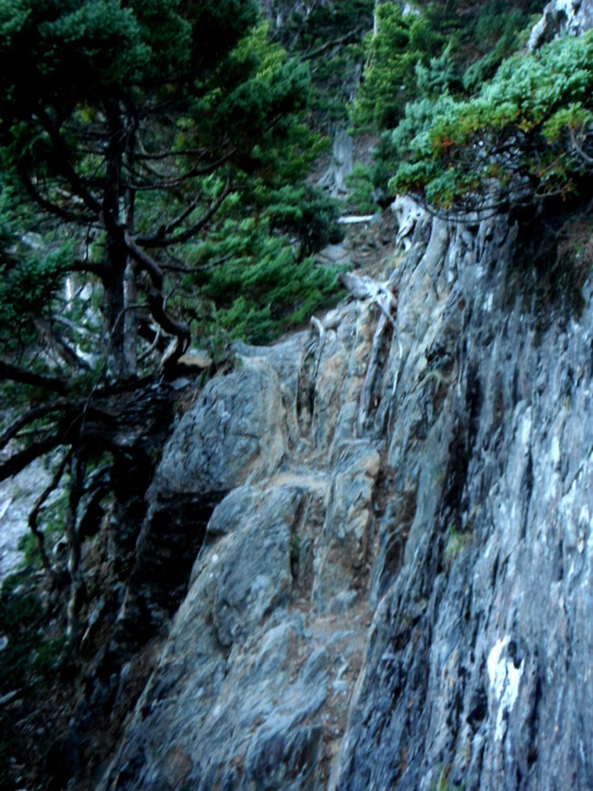 陡峭的山壁,或刀片頁岩或碎石陡徑,對準遠處飄逸的山社路條,取最佳路下行,走來輕鬆。