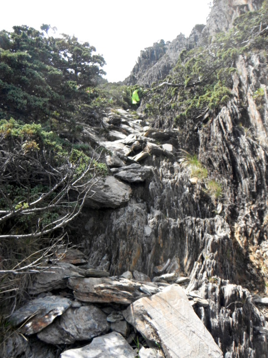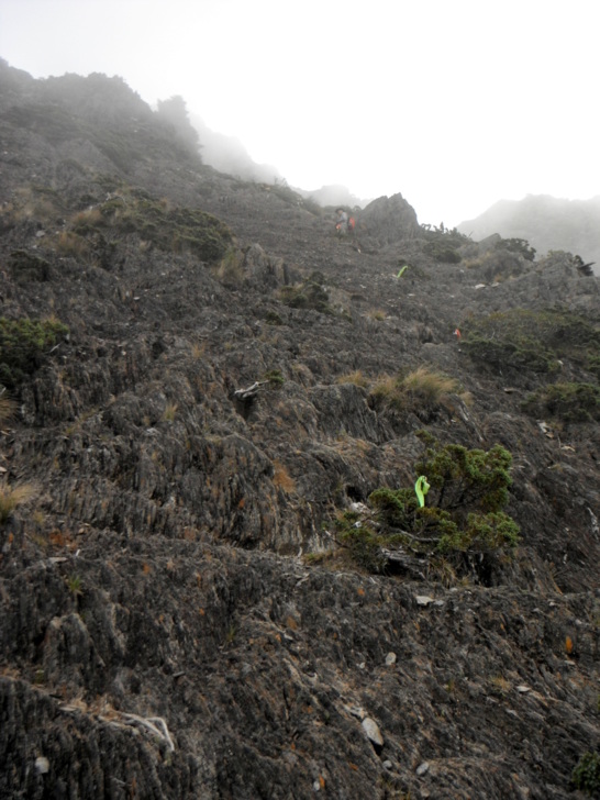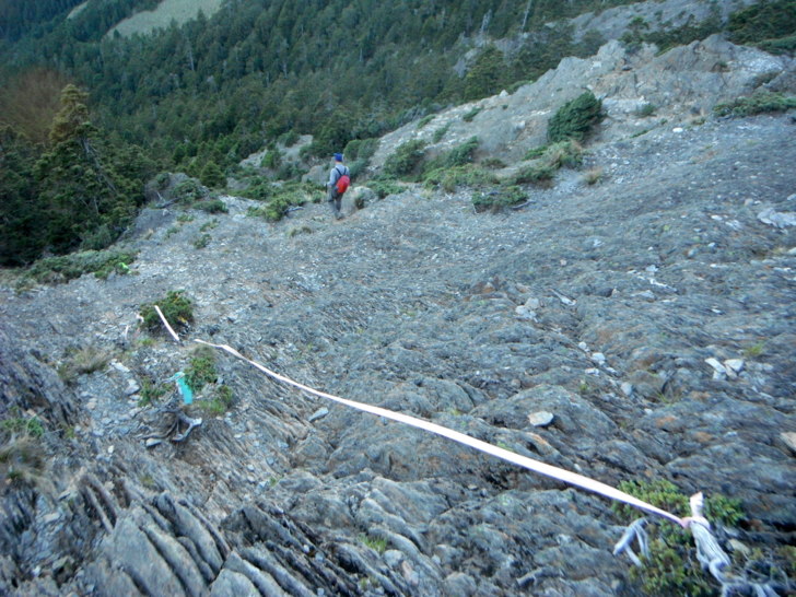 1052西峰山屋前陡坡。取回藏在這裡的帳篷,隊友先行,路ㄟ重新打包。
