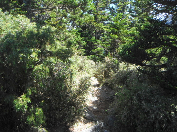 1100出發。多了帳篷的重量,行進速度竟慢了許多。開始陸續與上山的山友交會,好奇的路ㄟ邊走邊計算上山人數......。