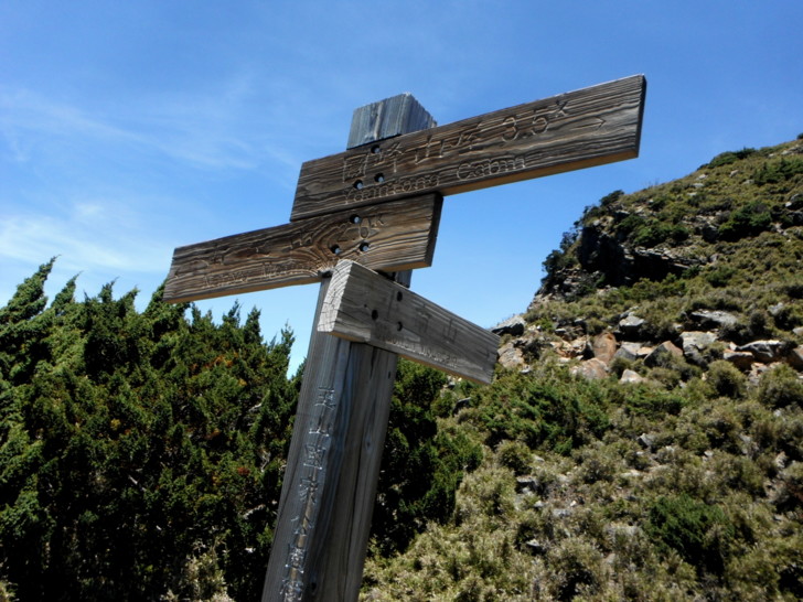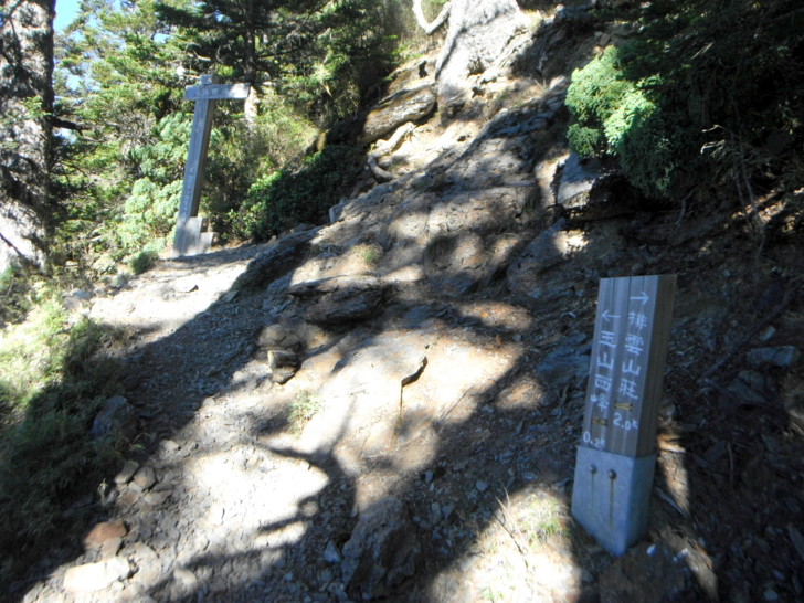 1530回南峰叉路指標。玉山後四峰回到這裡等於全部完登,路ㄟ雖已造訪三次,還是恭喜隊友薯條四座百岳入帳,回程閒聊,最大的收穫就是造訪鹿山,因為他絕不會想再走第二次,兩人相視而笑。