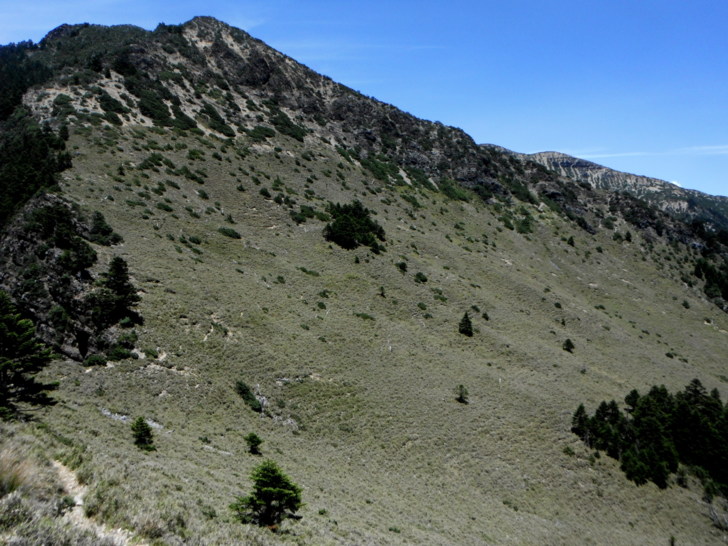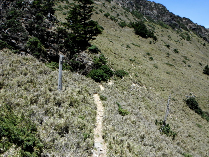 1221回抵小南登山口。隊友薯條先行。炎熱無遮蔽的草原緩坡,是很好走的山徑,怪的是路ㄟ竟提不起速度,走的有些緩慢,好在今天時間充裕,沒什麼壓力,索性放任身體自動調適,緩步慢行。