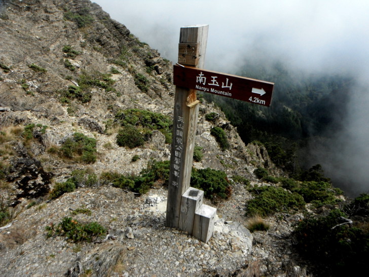 2.南玉山由鹿山叉路口起,碎石路徑頗有曝露感,雨天或強風時刻,建議小心行走以測安全;前段陡下頁岩,少有繩索,頁岩鋒利,建議穿戴手套為宜;南玉山登頂前箭竹路段,路條較少,路跡略亂,建議慢行,依尋路條前進為佳。