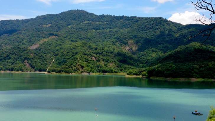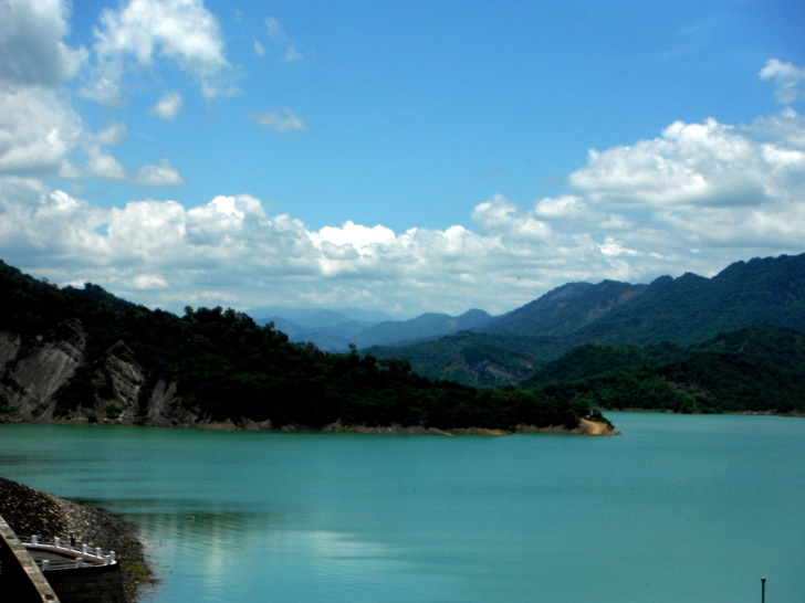 來到南化水庫景觀台。這個號稱南台灣水質最好的水庫,有著寧靜且優美的湖光山色,時近中午,清風徐吹,是心靜的加乘,一整個清涼感受圍繞四周,整個工作壓力在此喧洩無遺。
