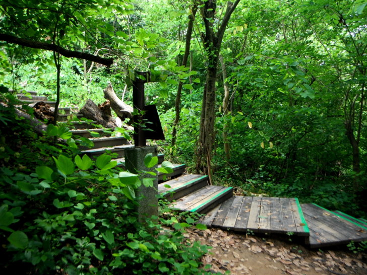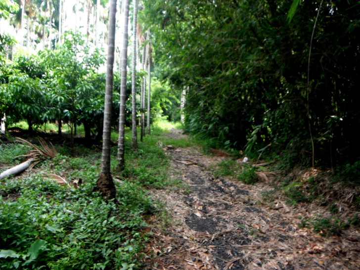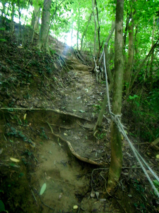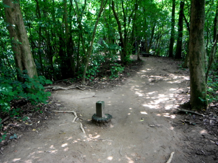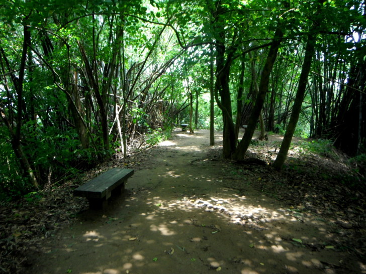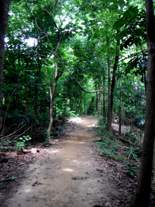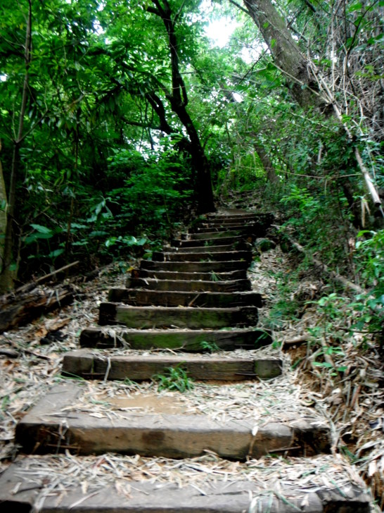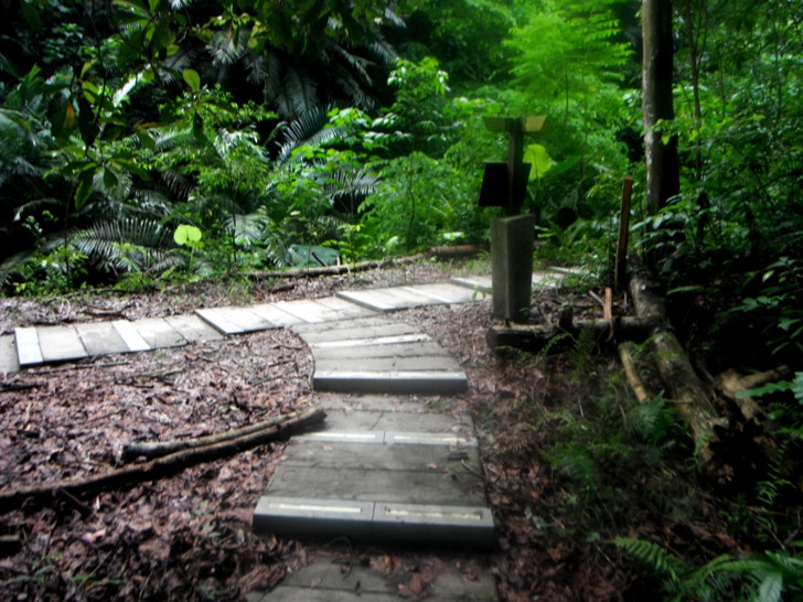 接回步道主線,右下二漢坡,取左上往桃花心木林。幾段起伏,坡度平緩,走的雖然自在,心中疑惑卻始終沒有消除,這條步道通往紅毛埤山基點的通道到底在哪裡?