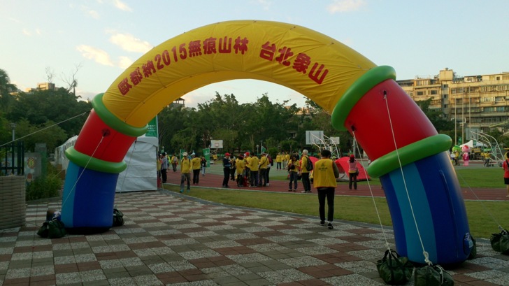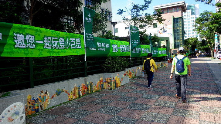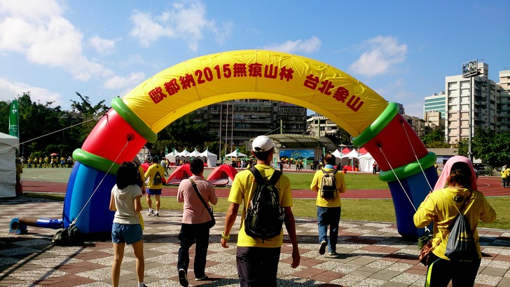 抵達活動會場信義國小的時間尚早,已有不少山友聚集,旁邊的101大樓在藍天下,更顯高聳壯觀。