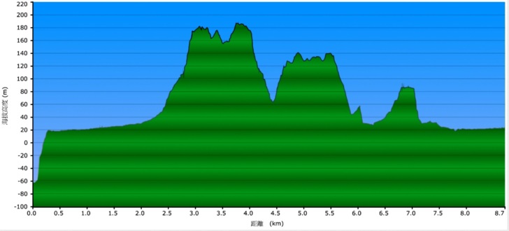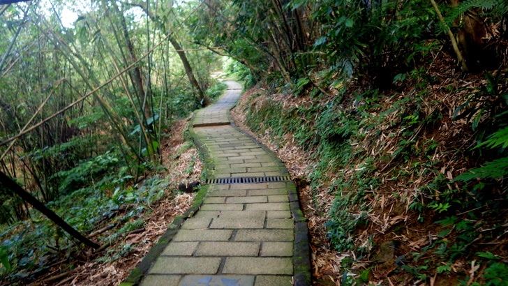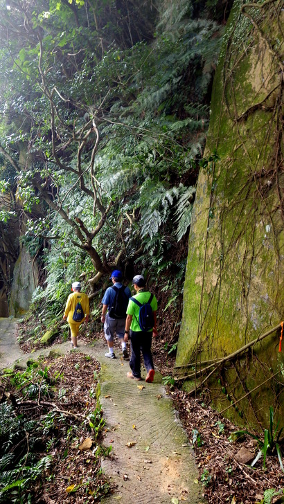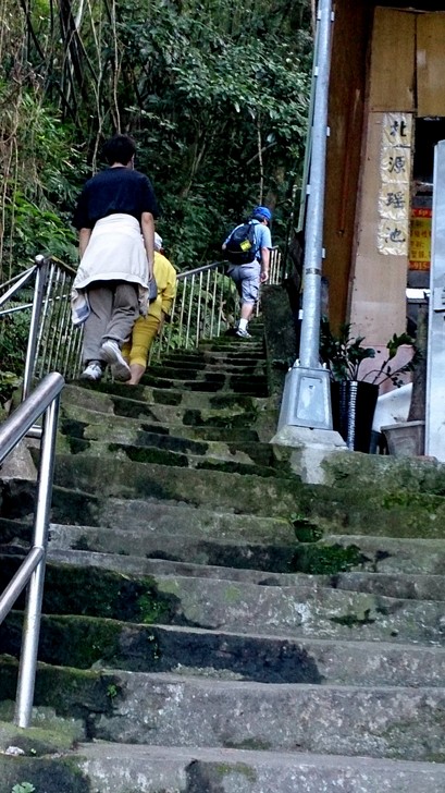 0854過瑤池宮後,取左階梯陡下。步道略窄,魚貫緩慢下行。