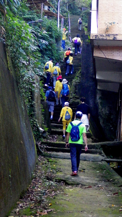 0918永春崗公園步道。這裡也是與親子組的會合點,只是來到這裡,指標與導引志工有些凌亂,有親子組的朋友在此"迷路",也有挑戰組的山友順著指標走卻又被導引回來。