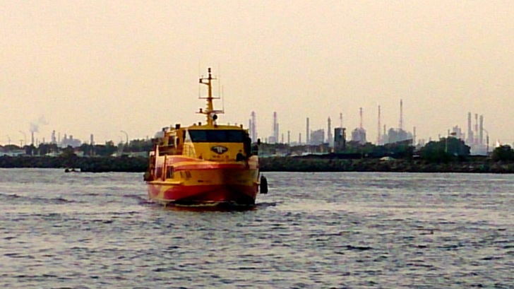 1530啟航。民營渡輪破浪前進,比公船快上很多,約20來分鐘的航程,破浪的水紋優美,海上景色也怡人。