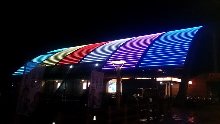 簡單介紹之後,回到碼頭的民宿已經天黑,稍做休息,用完晚餐,一群人品茗、小酌、暢快閒聊,碼頭頂蓋的燈光變幻,是小琉球迷人的夜,是夜,路行者微薰......。