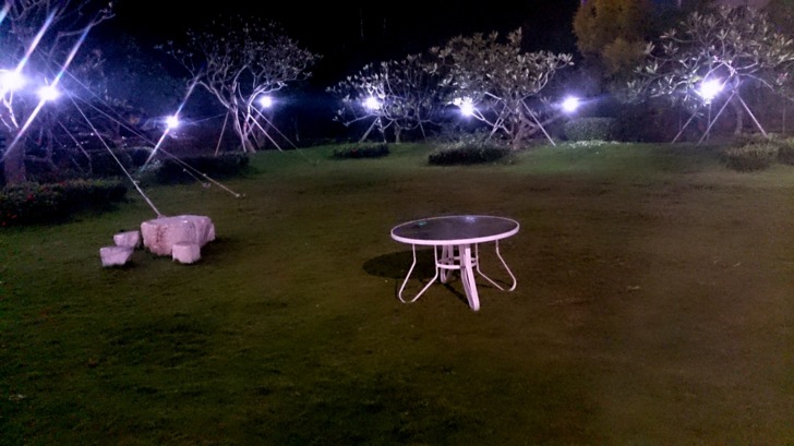 假日的高速公路彷如一座大型停車場。一路上走走停停,來到彰化田尾用晚餐,已比路ㄟ預定時間足足慢了一個小時左右,餐廳外的造景在燈光的襯映下,頗為浪漫。