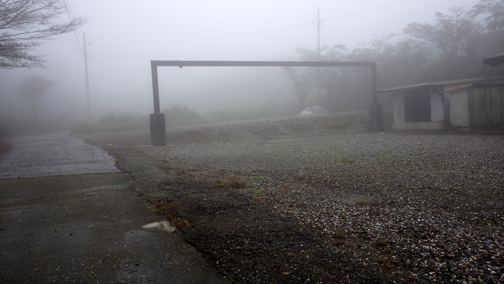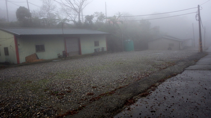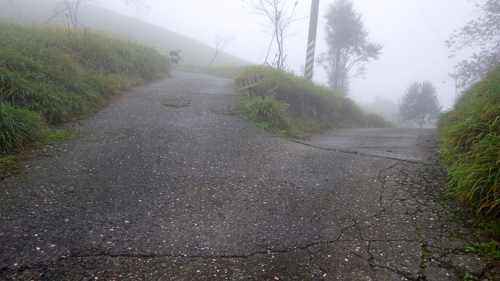 隨著高度上升,霧氣更濃,還飄著霧雨。已經有兩次想要造訪這座小百岳,都因這天氣而取消,路ㄟ的心情跌到谷底,常說"事不過三",這第三趟,老天還是不願給路ㄟ一個好天氣,心中有一種想要放棄的念頭,緩行慢上到"小瑞士",霧更濃,有點冷的寒風,車停片刻,按照歐都納的資料登山口已經不太遠,看來霧雨並不大,路ㄟ實在不想再訪第四次,無論如何,今天一定要登頂,主意既定,車續行,數著路旁的電桿編號,小百岳護照上說是"243號電桿",車在242號桿旁工寮空地停車。