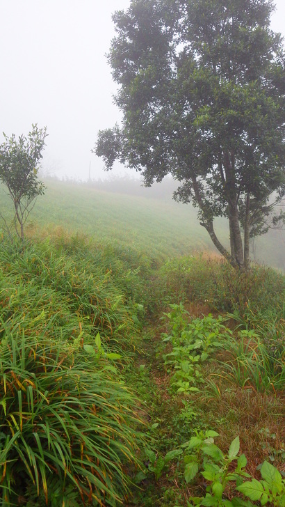 0930下車,再度出發。霧仍濃,雨已停,取水泥路行。現在不是花季,又是霧中,無景可賞,一路快行。