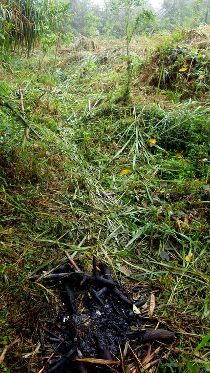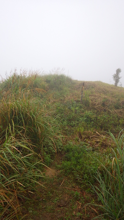 0952進入長芒草區。長芒已被山友前輩砍除,路徑看似明顯,卻是濕滑難行,緩步慢上。