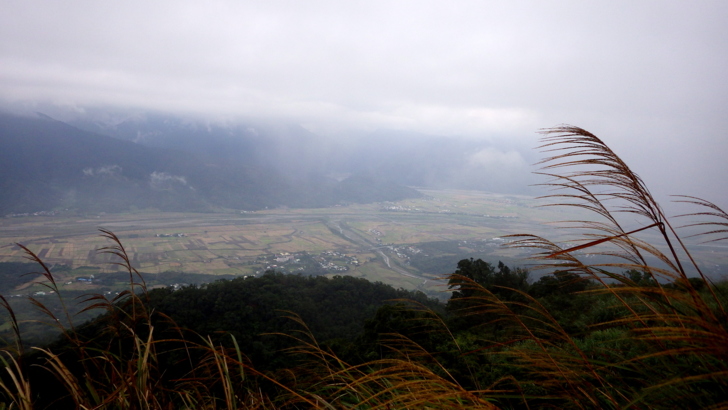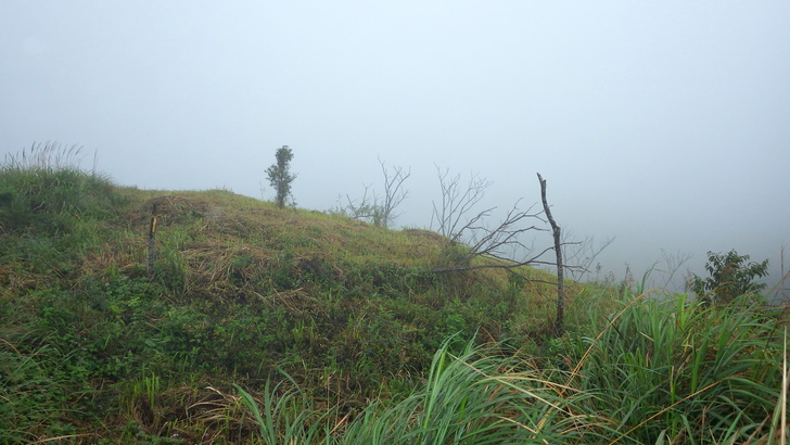 1000登頂萬人山(記錄高度886M)。要拍登頂照時,路ㄟ的簡易腳架卻斷了,折騰了半天,勉強拍了登頂照。時聚時散的迷霧,整個花東縱谷若隱若現,要是好天氣,這裡的展望絕對不比六十石山差,雖然路難行,下次再訪金針花季,路ㄟ應該會再來這裡欣賞美景吧!