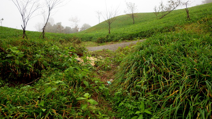 0942叉路。指標右下"永安製茶所",果然和網路寫的一樣,這才讓路ㄟ稍稍放心,取左水泥路上,翻過一座金針小山頭。