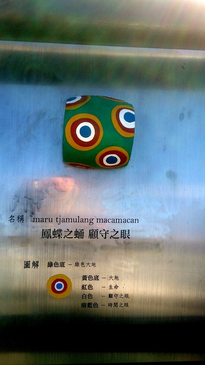 琉璃珠---排灣族的特色工藝,每一顆珠的圖騰都有它的意涵,有趣的是...來訪吊橋的遊客很多都誤以為"琉璃橋"就是"玻璃橋",還一直疑惑的問:"怎麼沒看到玻璃?""怎麼不是透明的?",路ㄟ暗自苦笑。