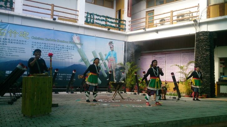 時間尚早,走完琉璃橋,順道進入園區參觀一下,入口處迎賓舞表演,展現了原住民的特色與熱情。