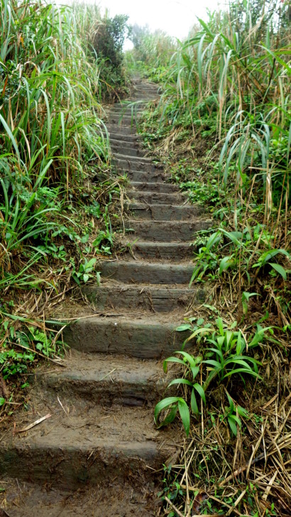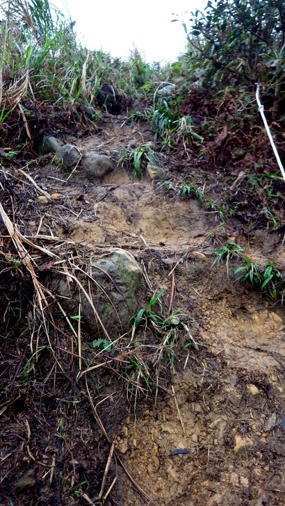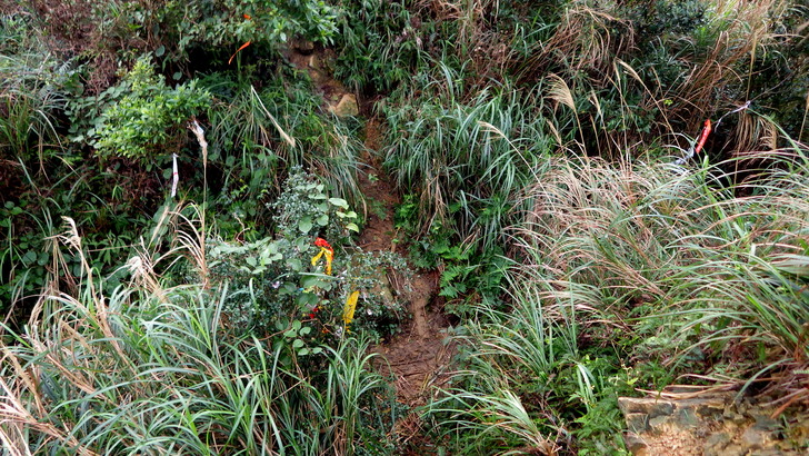 1200索道遺跡。(H200M)取右下行,筆直的陡坡,稍滑,小心慢行緩下。