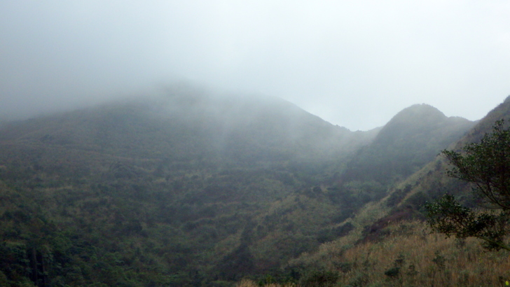 1050鞍部空地(H630),在此小休。四周無人,稍解路ㄟ的壞習慣。雲霧漂緲,這裡該算是這段路程的最後的清靜,茶壺山上可看見有不少的遊客,有部份山友翻越茶壺往這裡過來,應該是走半平山、燦光寮線的吧!