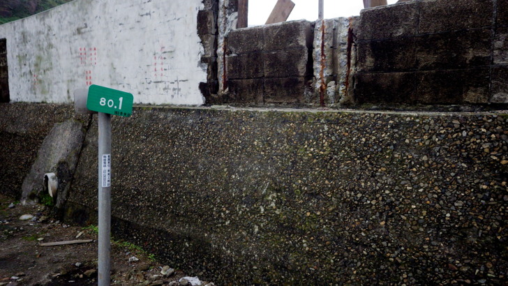1223回台二線78.8K標。取右靠路邊行。車流頗大也頗快,路邊快行,不敢逗留。