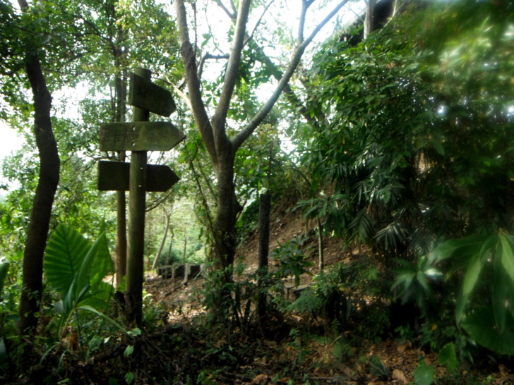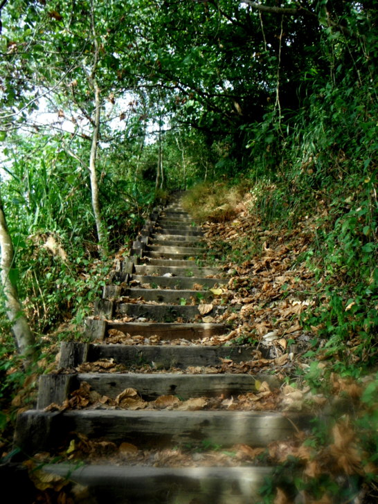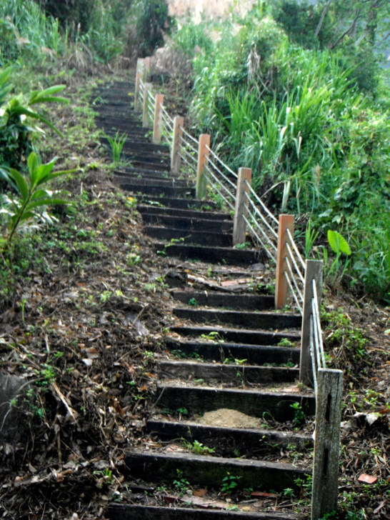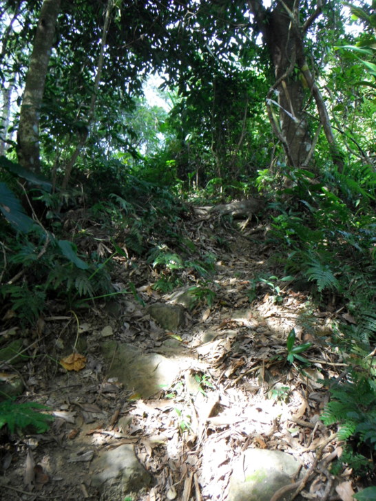 1213叉路(H150m)。無指標,左有緩坡,右有完善階梯,取右上行,略陡,慢行其間。