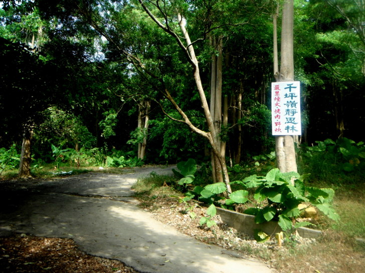 1244千坪嶺靜思林(H285m)。舒適空曠,平坦完美的林蔭空地,有不錯的展望,也能看到山坳深潭,只是怎麼看都讓路ㄟ疑問重重。有山友在此休憩泡茶,路ㄟ無意叨擾,取寬廣路徑續行。