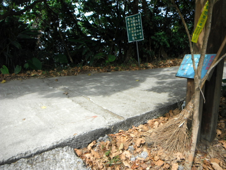 略顯崩毀的寬大柏油路徑,是可以行車的(只是路ㄟ不知車該怎麼開到這裡?),兩側的林蔭,筆直茂密,行走其間,有著倘佯在綠色隧道的感覺,走來更是舒服。