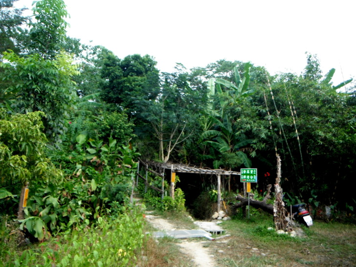 1210啟程出發(錶測高度140m)。邊走邊吃,來到登山口。指標"台灣潭10分,望高寮50分"。取徑上行,烈日當空,在林蔭中行走,倒也舒服。