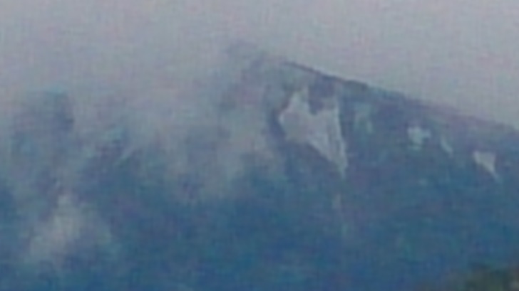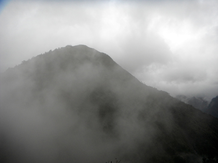 離麟趾山叉路不遠處找到了手套,撿起手套抬頭時,忽見玉山半遮掩,索性停下腳步,等待撥雲見玉山。連稜的麟趾串連著玉山前峰與西峰,在這放晴的時刻,更顯秀麗優雅,忽見玉山現蹤露出白頭,路ㄟ拿起相機要留身影,卻又是半遮,只怪老路ㄟ手腳太慢,相機又智障,只能悻然續行。